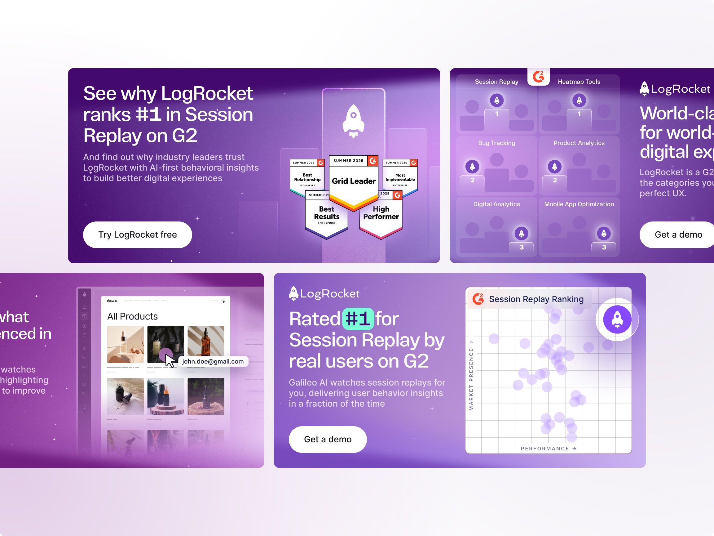 Ads leveraging LogRocket's strong position on G2