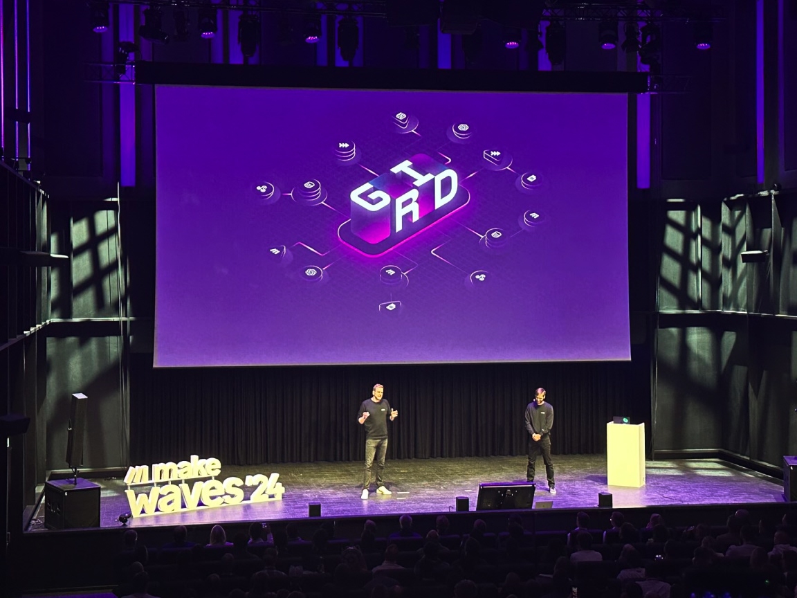 Make’s CEO introducing Make Grid with the key visual taking literal center stage at Make’s Waves ‘24 conference